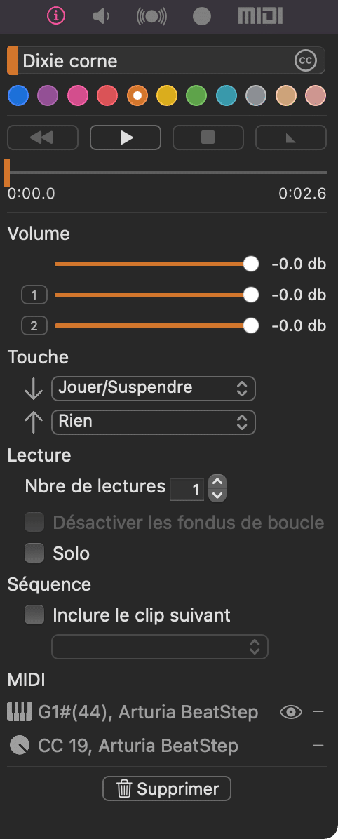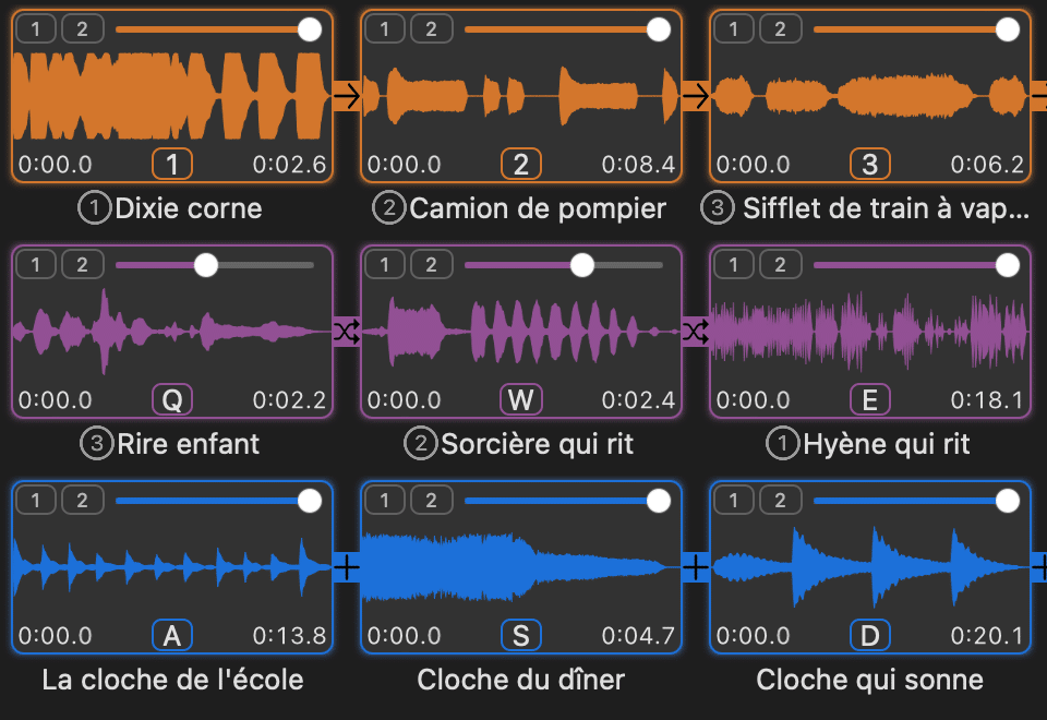 Grâce aux séquences, il suffit d’un simple clic pour jouer toute une liste de clips sonores. Vous pouvez aussi jouer un clip pris au hasard dans la séquence pour éviter la monotonie de devoir jouer continuellement le même clip.
