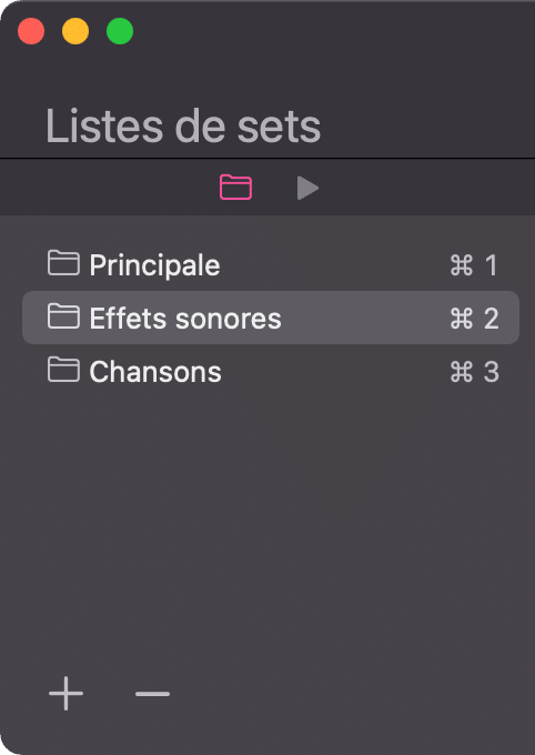 Les listes de sets vous aident à organiser vos clips sonores dans différents groupes.
