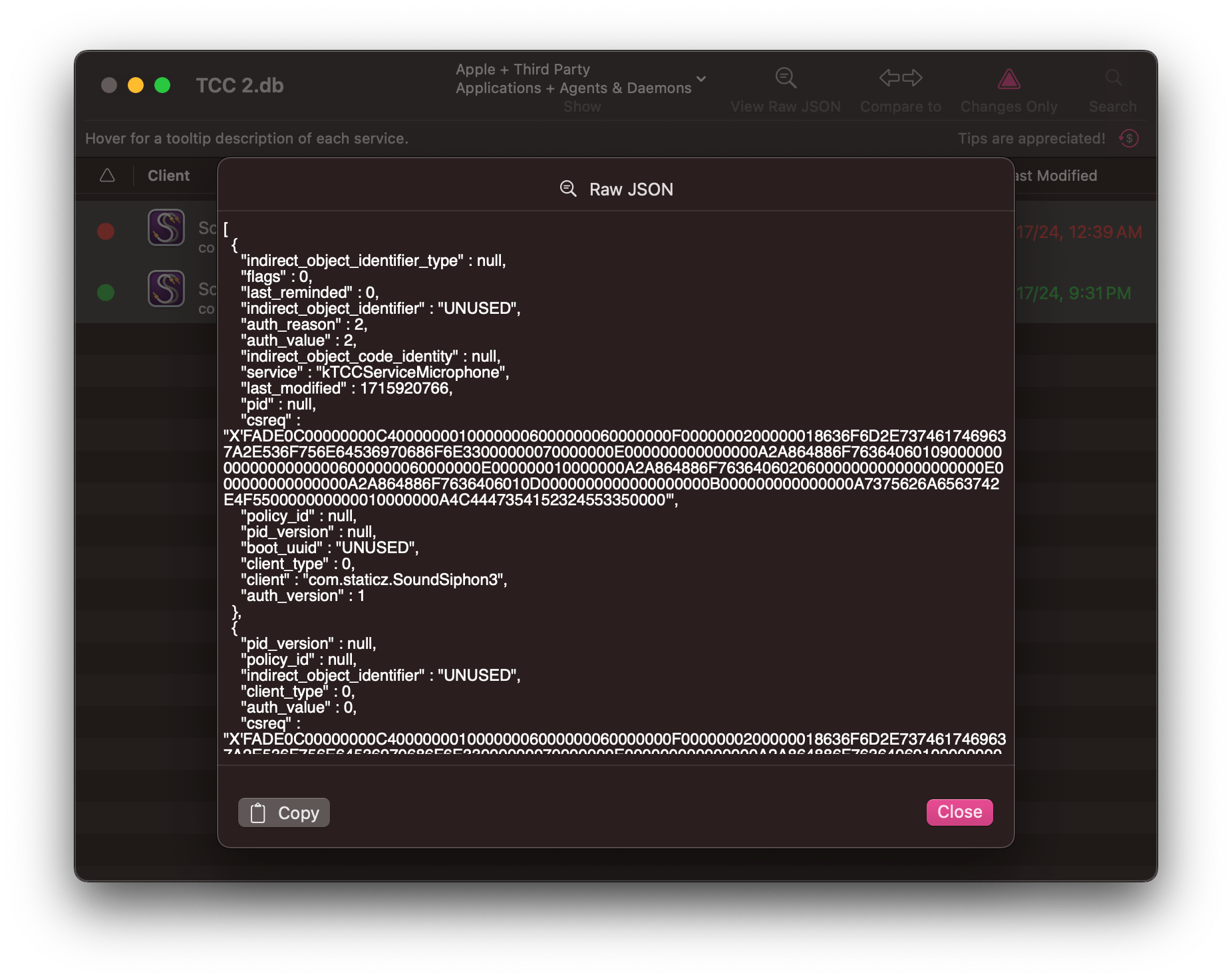 Select old and new TCC.db files to see exactly what has changed.